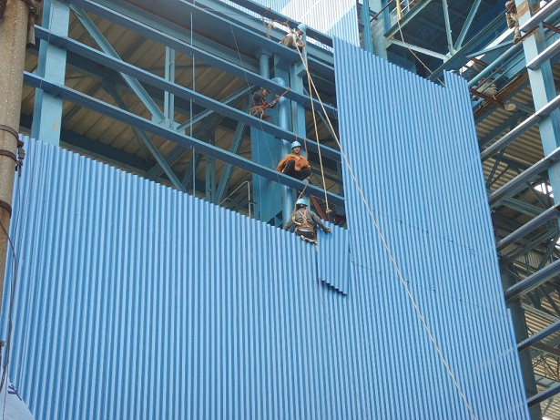 具有无污染、优秀的耐候性、抗腐蚀、高加工等特性,可以单独使用,用于不保温建筑的外墙、屋面或装饰,也可以与岩棉或玻璃棉组合成各种保温屋面及墙面(即岩棉/玻璃棉夹心钢板),现已广泛应用于厂房、电厂、核电、冷库、体育馆、仓库、展览馆、活动房、大型游乐场等。